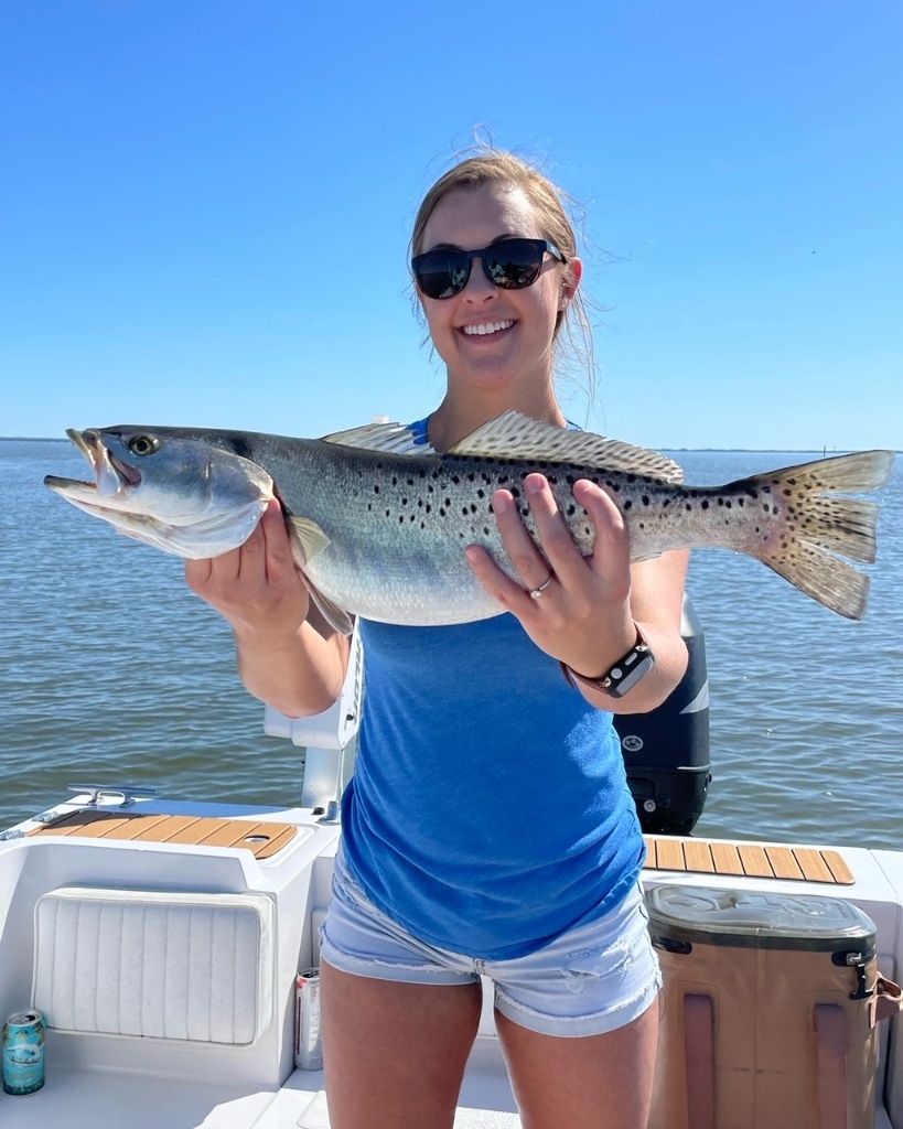 Sea Trout: Also called speckled trout, these beautiful fish are a favorite among light tackle enthusiasts. They have a soft mouth, so finesse is key when fighting them. Sea trout are most active in the cooler months and love to hit artificial lures. The excitement of seeing a trout explode on a topwater plug is hard to beat!